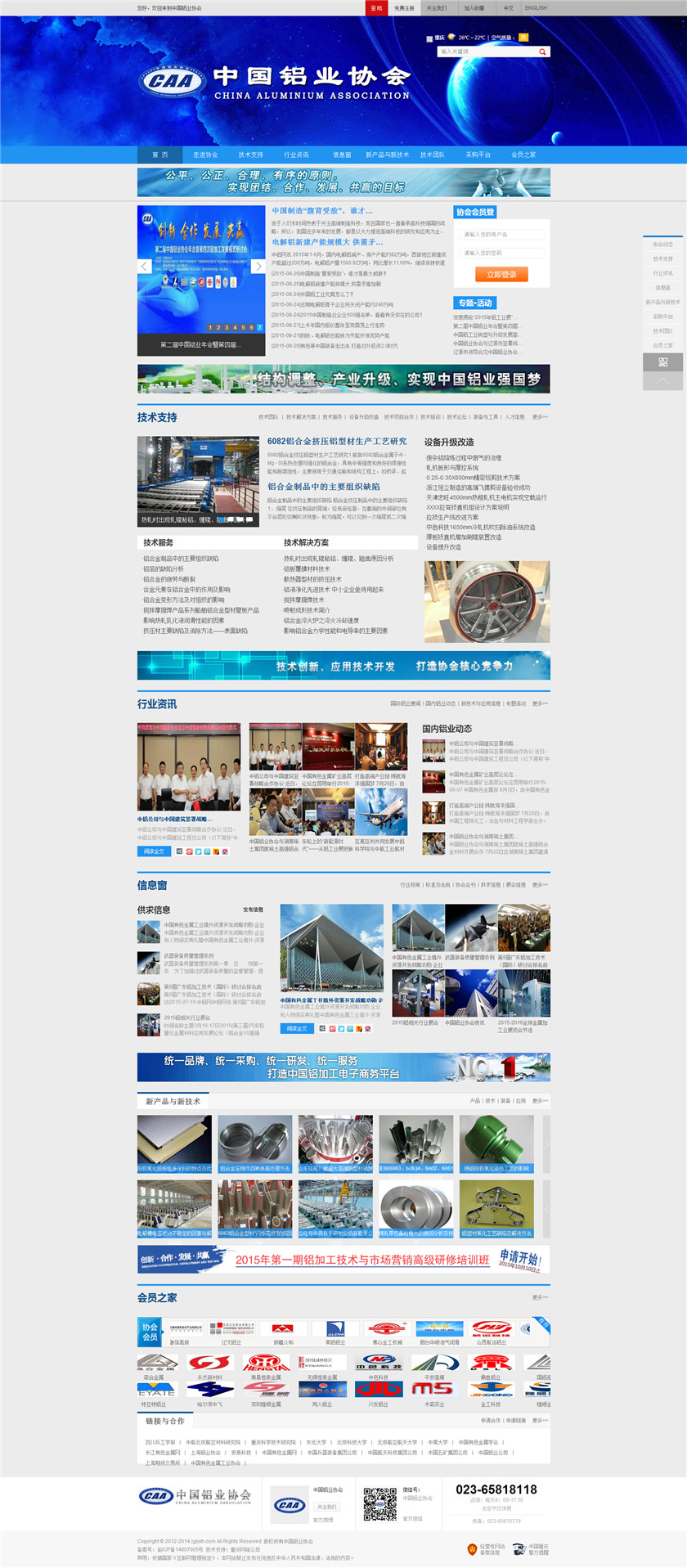Project Description 中国铝业协会是由中国国内主要从事铝合金铸造、板、带、箔、管、棒、型材、锻件等企业组成的行业协会组织,协会由国内具有一定规模和影响力的企业发起,已有三百多家会员企业,目前还有很多企业踊跃希望加入,协会现有会员企业年销售额1000多亿元人民币,协会会员企业分布在国内华东、华南、西南、环渤海、东北、胶东半岛等中国经济活跃地区;产品涵盖航空航天、兵器装... Official website address 曲靖http://www.caa2014.com I want to share