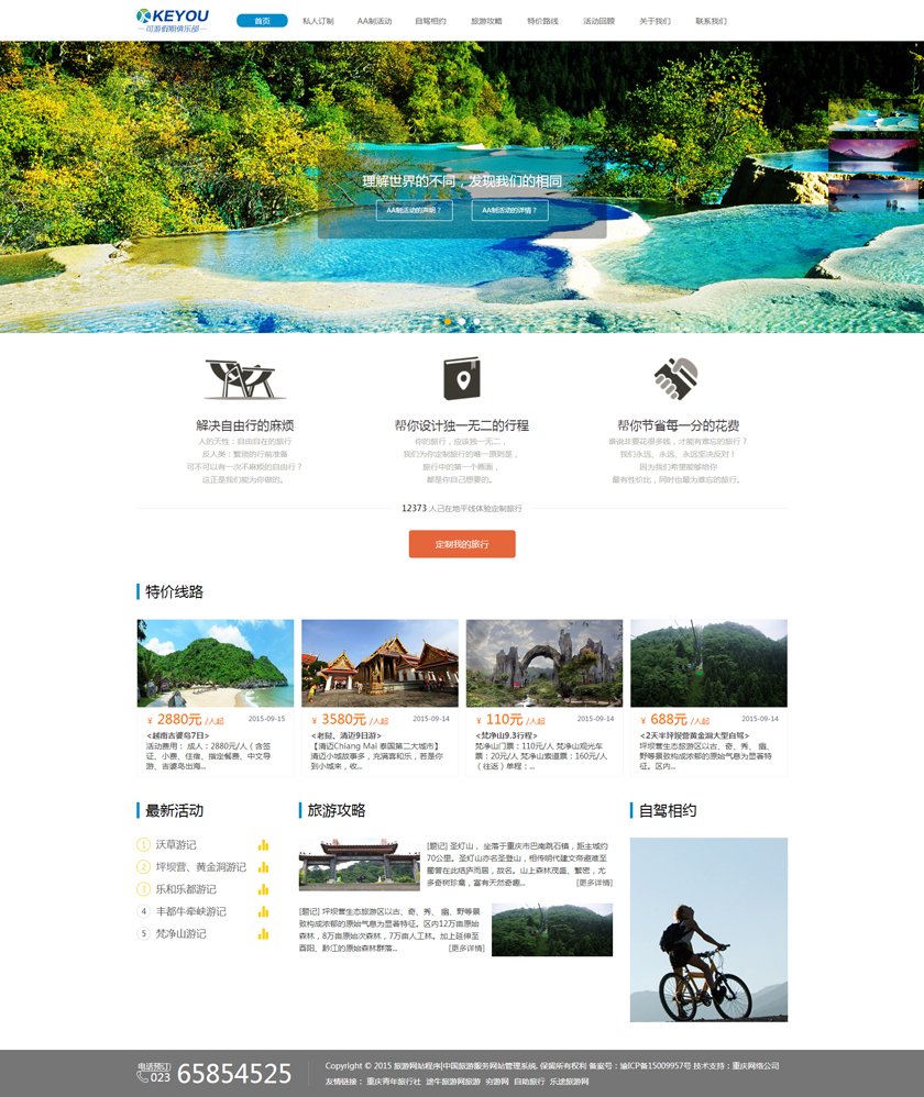 Project Description 6人游旅行网隶属于北京六人游国际旅行社有限公司。打造“为爱出行”:专为家庭,朋友,情侣间的旅行,提供私家小团精品游。打造高品质的旅行产品,解决传统跟团游和自由行存在的问题,将旅行服务做到臻善臻美。 Official website address 曲靖http://www.keyoujq.com I want to share